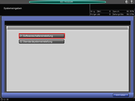 Drücken Sie nacheinander auf [Systemeingaben] und [Softwareschaltereinstellung].