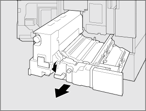 Es besteht Verbrennungsgefahr. Seien Sie besonders vorsichtig, wenn Sie die Transportfixiereinheit herausziehen oder den Fixierbereich öffnen.