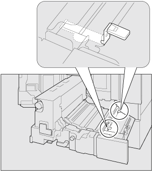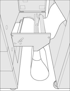 Wenn sie sich gelöst haben, informieren Sie sich unter Innenseite des Hauptsystems reinigen über die Vorgehensweise und bringen Sie sie wieder an.