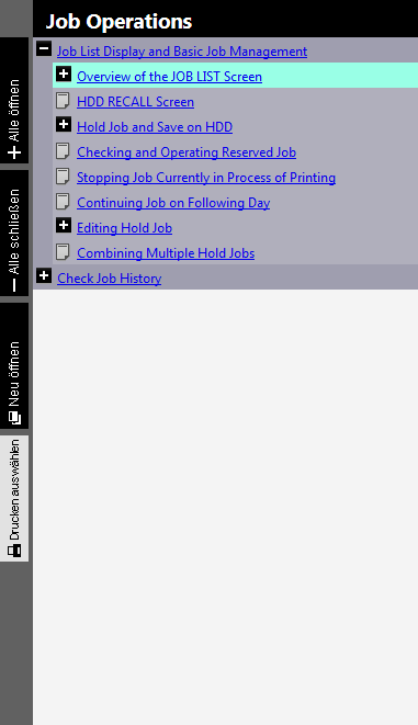 Klicken Sie auf [+] im Inhaltsverzeichnis, um das Verzeichnis aufzuklappen, und auf [-], um das Verzeichnis einzuklappen.