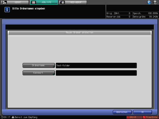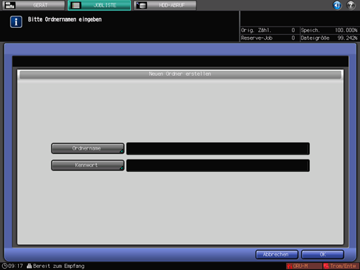 Wenn Sie einen Ordner auswählen, der mit einem Kennwort geschützt ist, wird der Bildschirm für die Kennworteingabe angezeigt. Geben Sie das Kennwort ein und drücken Sie auf [OK].