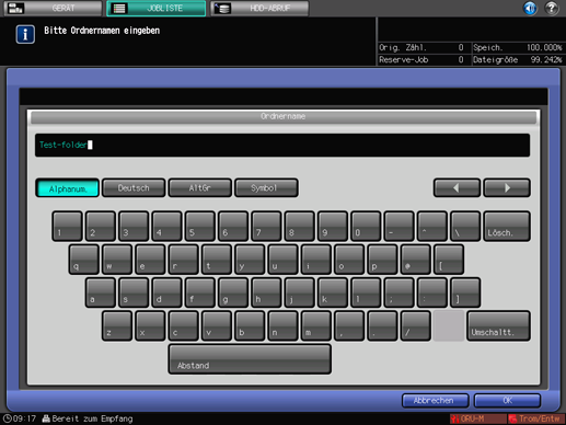 Drücken Sie im Bildschirm [Neuen Ordner erstellen] auf [Ordnername].