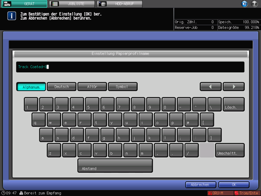 Geben Sie den Papierprofilnamen ein und drücken Sie auf [OK].