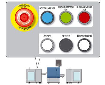 Ausführliche Informationen zum Entriegeln von NOT-STOPP finden Sie Bedienfeld (Rollenwickler RW-101/Rollenwickler RW-201).