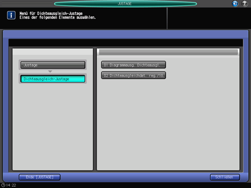 Drücken Sie auf [Dichteausgleich-Justage] im Bildschirm [Justagemenü].