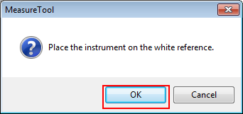 Wenn die folgende Meldung angezeigt wird, platzieren Sie das Spektralphotometer horizontal auf dem Kalibrierungs-Dock und klicken Sie auf [OK].