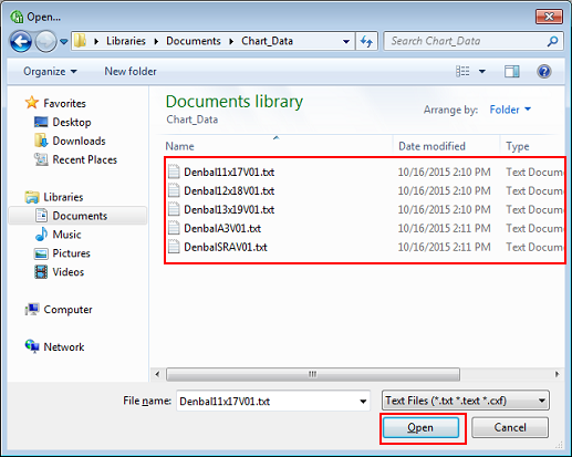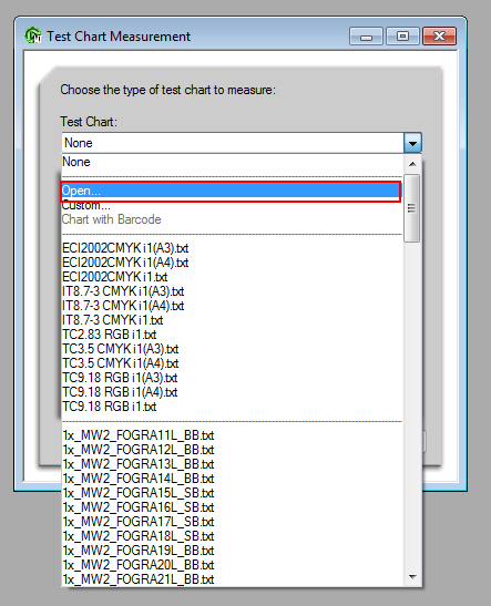 Wählen Sie die Skriptdaten für die Messung entsprechend des Papierformats aus und klicken Sie auf [Open].
