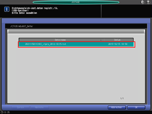 Sie können die Messdaten (angepasster Wert für den Dichteausgleichs), die auf dem USB-Speicher oder auf dem Computer im Netzwerk abgelegt wurden, im System registrieren.