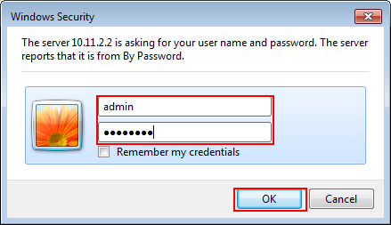 Tragen Sie unter [User Name] und [Password] den Benutzernamen und das Kennwort ein und klicken Sie auf [OK].