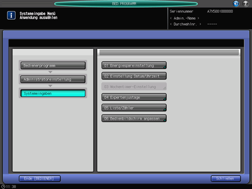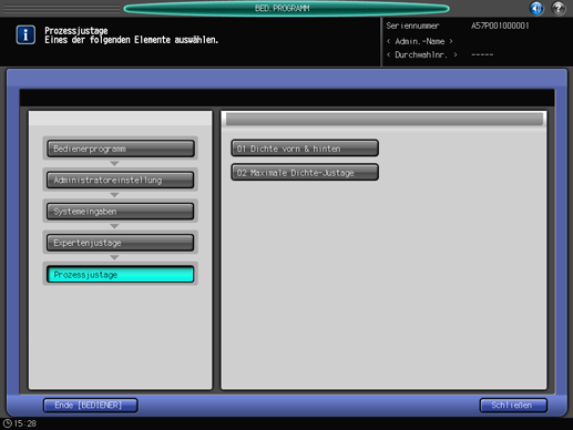 Wenn Sie das [BED.PROGRAMM] beenden, wird die maximale Dichte-Justage gestartet. Warten Sie, bis die Justage abgeschlossen ist.