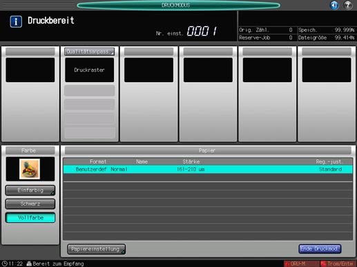 Wenn Sie für den Druck aller Seiten eines Jobs bereit sind, wählen Sie die Einstellung [Normaler Stopp] unter [Einstellung für Druckstopp bei Änderungen], bevor Sie alle Seiten ausdrucken.