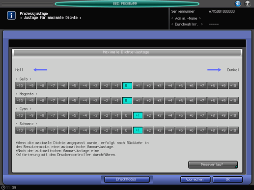 Die maximale Dichte-Justage ist erforderlich, wenn die Druckergebnisse mit der automatischen Gamma-Justage nicht verbessert werden können.