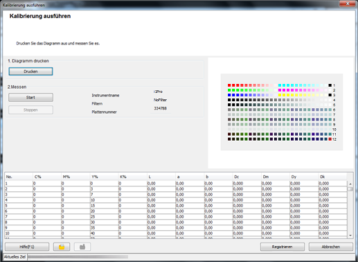 Durch die Registrierung der abgerufenen Kalibrierungsdaten im Bildcontroller können diese Daten beim Drucken angewandt werden.
