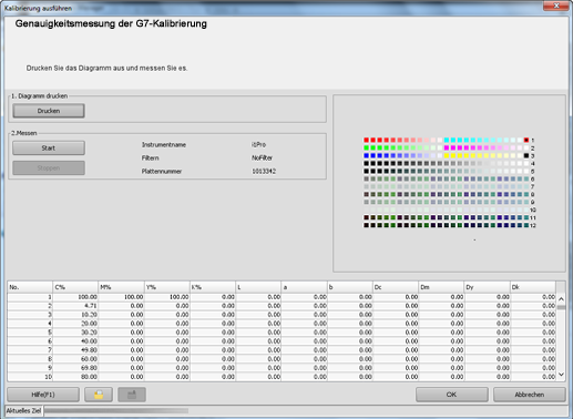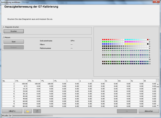 Der Bildschirm [Genauigkeitsmessung der G7-Kalibrierung] wird angezeigt.