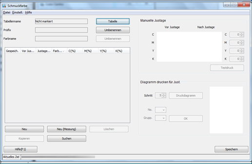 Der Bildschirm [Schmuckfarbentabellen-Verwaltung] wird angezeigt.