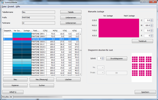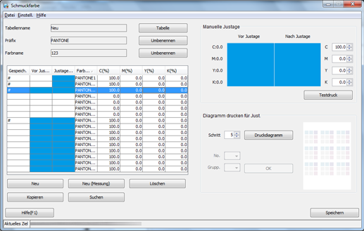 Die Farben, die angepasst werden, werden in der Spalte [Nach Justage] aufgeführt.