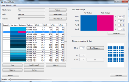 Beispiel: "PANTONE 300C" ist ausgewählt.