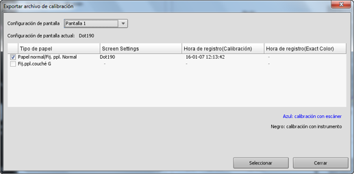 Seleccione una pantalla y un tipo de papel y, a continuación, haga clic en [Seleccionar].