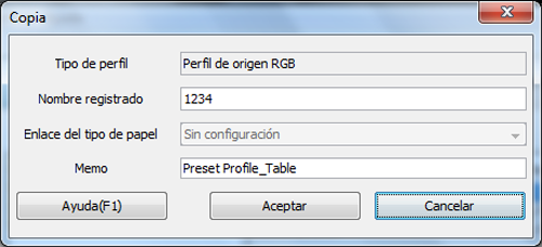 Cuando se seleccionan varios perfiles de origen RGB, la opción [Copia] no está disponible.