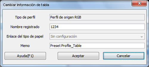 Cuando se seleccionan varios perfiles de origen RGB, la opción [Cambiar información de tabla] no está disponible.