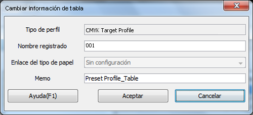 Cuando se seleccionan varios perfiles de destino CMYK, la opción [Cambiar información de tabla] no está disponible.