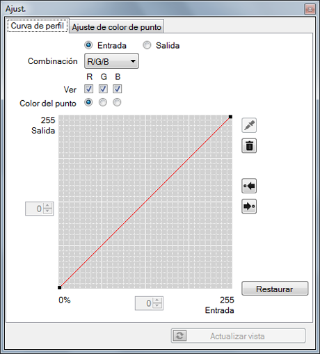 Cuando seleccione [RGB] o [CMYK], puede ajustar las curvas de perfil agrupadas de RGB o CMYK.