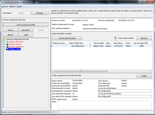 En la vista de árbol de la pantalla [Gestión de configuración de color], haga doble clic en la configuración de color cuya información detallada desee ver.
