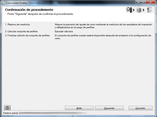 Se inicia un asistente y aparece la pantalla [Confirmación de procedimiento].