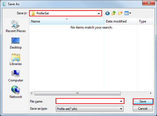 Desde la vista en árbol y la lista de [Gestionar conjuntos de perfiles existentes], seleccione un conjunto de perfiles.