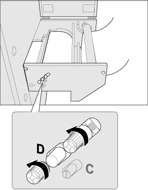 Durante la transferencia o impresión, afloje los dos tornillos del panel lateral de la sección delantera.