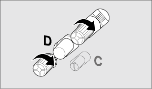 Si mueve el mando hacia la derecha, los medios de impresión se enviarán a la máquina ligeramente doblados hacia dentro.