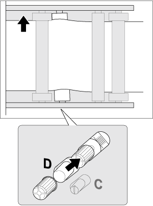 Desplace el mango para alejar el borde del medio de impresión de la guía de medios de impresión (rodillo tensor 1) o guía limitadora (rodillo limitador).