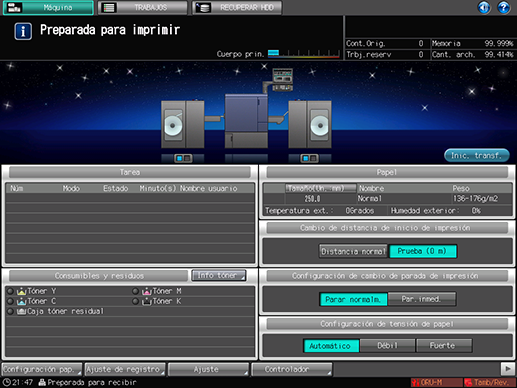 Para obtener más información, consulte Pantalla 1. Estado máquina/2. Config. máquina.