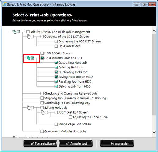 Vérifiez les titres cochés et cliquez sur [Imprimer] pour imprimer toutes les pages cochées.
