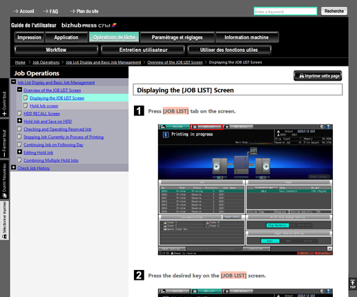 Vous pouvez rechercher des informations sur la base du but visé, par exemple l'exécution d'un workflow classique, l'entretien de la machine ou la rationalisation du workflow.
