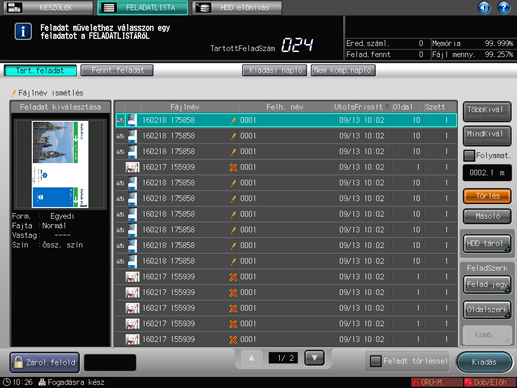 Nyomja meg a [FELADATLISTA] lapfület, hogy megjelenjen a [FELADATLISTA] képernyő.