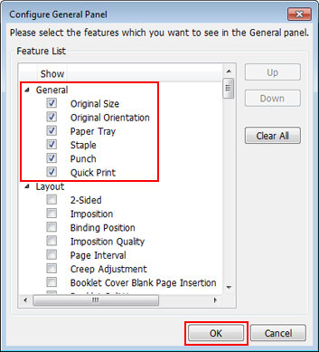 On the [Configure General Panel] screen, select setting items you want to display on the [General] screen.