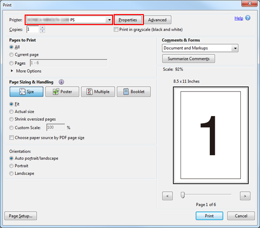 Seleccione la impresora que se va a utilizar para imprimir y haga clic en [Propiedades].