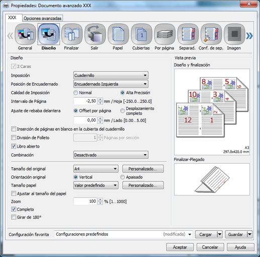 A continuación, se muestran ejemplos de configuración de la impresión de libros abiertos. Para obtener más información sobre la configuración, consulte Impresión de libro abierto..