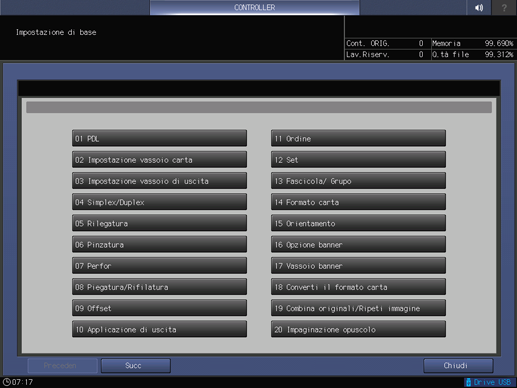 Questa schermata è visualizzata se si seleziona [Impostazione stampa diretta] - [Impostazione di base] nella schermata [Menu impostazione macchina controller]. Per informazioni dettagliate su come visualizzare la schermata [Menu impostazione macchina controller], fare riferimento a CONTROLLER: impostare il Controller.