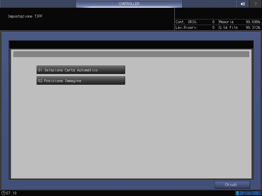 Questa schermata è visualizzata se si seleziona [Impostazione stampa diretta] - [Impostazione TIFF] nella schermata [Menu impostazione macchina controller]. Per informazioni dettagliate su come visualizzare la schermata [Menu impostazione macchina controller], fare riferimento a CONTROLLER: impostare il Controller.