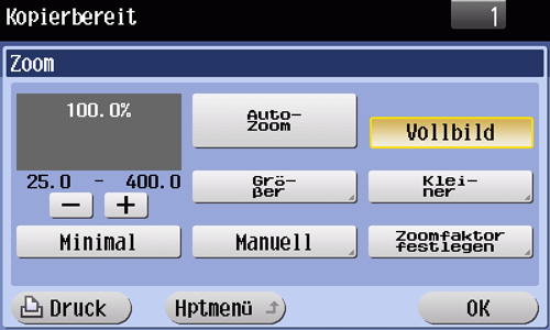 Sie können beim Erstellen einer Kopie ein Bild mit dem angegebenen Zoomfaktor vergrößern oder verkleinern.