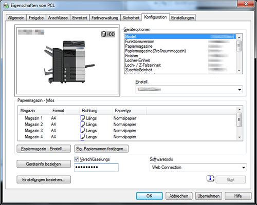 Prüfen Sie auf der Registerkarte [Konfiguration] die Option [Verschlüsselungs] und geben Sie das auf diesem System festgelegte Verschlüsselungskennwort ein.