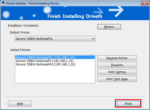 When you finish installing the printer driver, configure the default settings of the printer driver. For details, refer to Here.