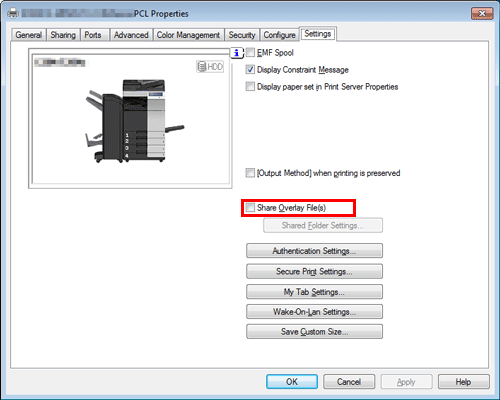 [Obtain Device Information] | If your computer can communicate with this machine, your computer obtains and displays the latest information on the overlay images registered in this machine. | |