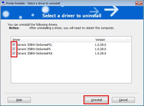 Select the printer driver you want to delete, then click [Uninstall].