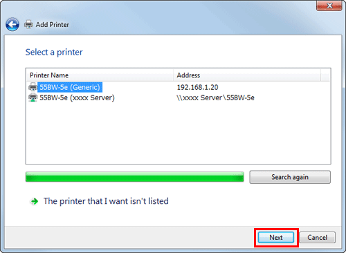 In the window showing the detected printer, click [The printer that I want isn't listed].