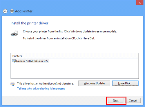 If the [Install the printer driver] dialog box appears, go to Step 12.