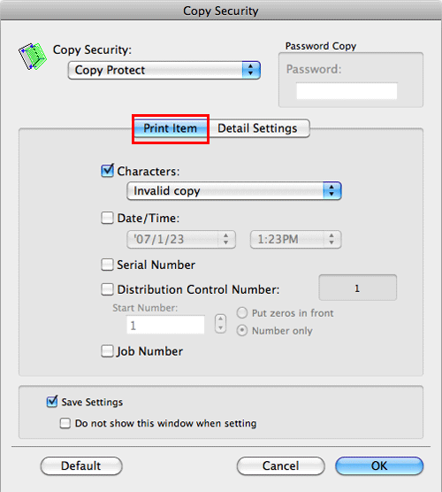 To use [Password Copy], you need to install the optional Security Kit and enable the Password Copy function of this machine. For details on how to enable the Password Copy function, refer to Here.