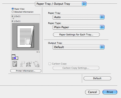 [Paper Tray:] | Select the paper tray for the printing paper. When you select [Auto], the tray containing the paper selected in [Paper Size:] is automatically used. |